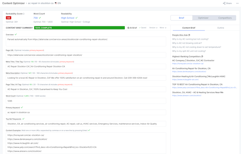 A pivotal feature that sets Rankability apart is its innovative approach to content brief creation. Traditionally, preparing a content brief was a labor-intensive process, requiring substantial time and effort to align on keywords, themes, and content structure. Rankability has streamlined this process remarkably.